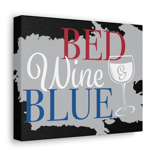Bed ,Wine , And Blue canvas art piece for living and office space