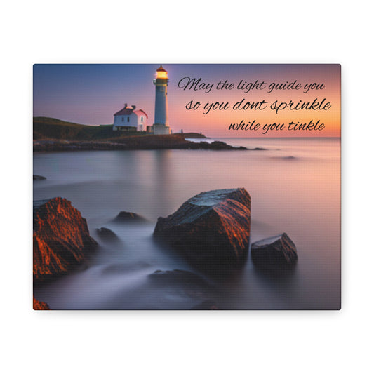 Beautiful Lighthouse with corny quote for bathroom
